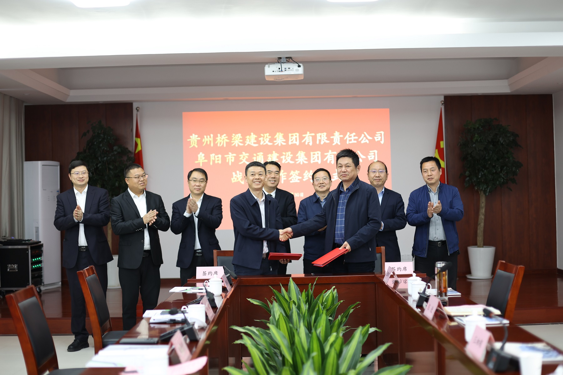 3月30日,貴州橋梁集團(tuán)與阜陽(yáng)交建集團(tuán)戰(zhàn)略合作簽約儀式在阜陽(yáng)交建集團(tuán)三樓會(huì)議室舉行,阜陽(yáng)市交通運(yùn)輸局黨組成員、副局長(zhǎng)王初領(lǐng)、陳進(jìn)出席簽約儀式。
