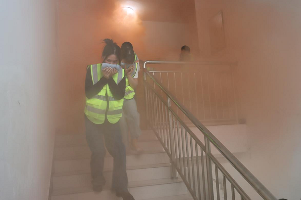隨后進(jìn)入應(yīng)急疏散演練環(huán)節(jié),一名員工發(fā)現(xiàn)火情,立即上報(bào)并啟動(dòng)應(yīng)急響應(yīng)。員工們迅速行動(dòng),用濕毛巾捂住口鼻,按照緊急疏散標(biāo)識(shí)安全、有序的進(jìn)行緊急撤離。在演練過程中,員工們展現(xiàn)了較高的自救互救意識(shí)和團(tuán)隊(duì)協(xié)作能力,確保了演練順利進(jìn)行。